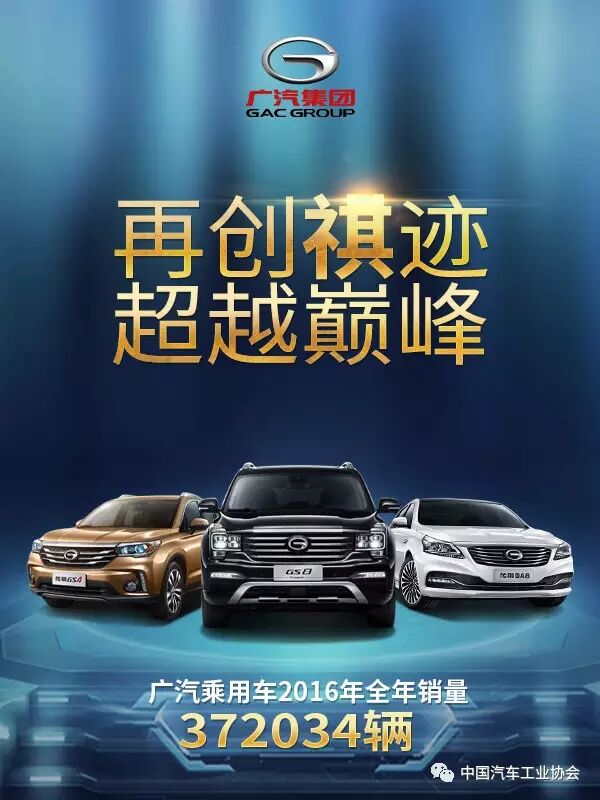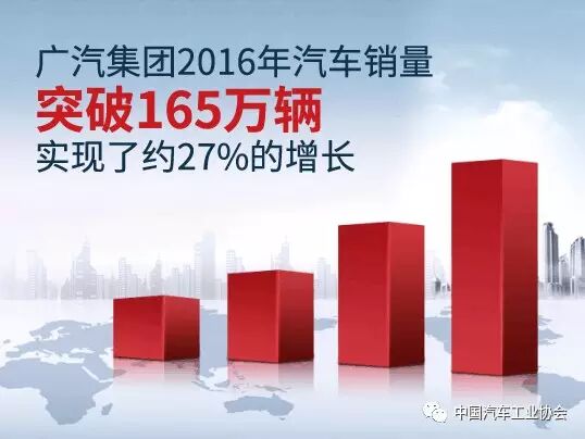 年初,国内几大国有汽车集团陆续公布2016年12月份及全年产销数据,其中广州汽车集团股份有限公司(以下简称广汽集团)全年实现整车产销分别约为165.96万辆和165万辆,同比增长分别约30%和27%,销量增幅高于行业平均水平12个百分点,且销量增幅位居国内六大国有汽车集团之首。同时,广汽集团在2016年连续四年入围《财富》世界500强并位居第303名,较2015年排名上升59位,上升幅度达16.3%。